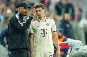 35岁的老将穆勒在首回合比赛中替补登场,他还打进了拜仁的唯一进球。托恩认为孔帕尼这次会让穆勒首发:“穆勒当然不再具备十年前那样的火力和能力,但他还是可以为了这样的一场比赛再次全力以赴,如果在60分钟后效果不行,那你就换上别人。”