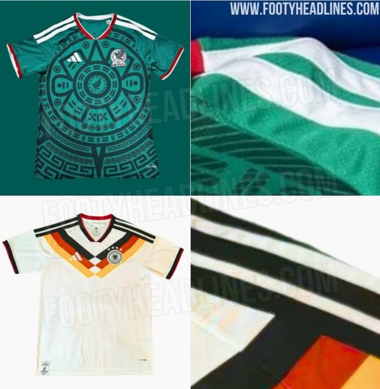 从流出的德国和墨西哥国家队主场球衣设计图来看,阿迪达斯确实将采用超宽版三道杠设计,这一创新仅应用于主场球衣,客场版本仍保留传统样式。